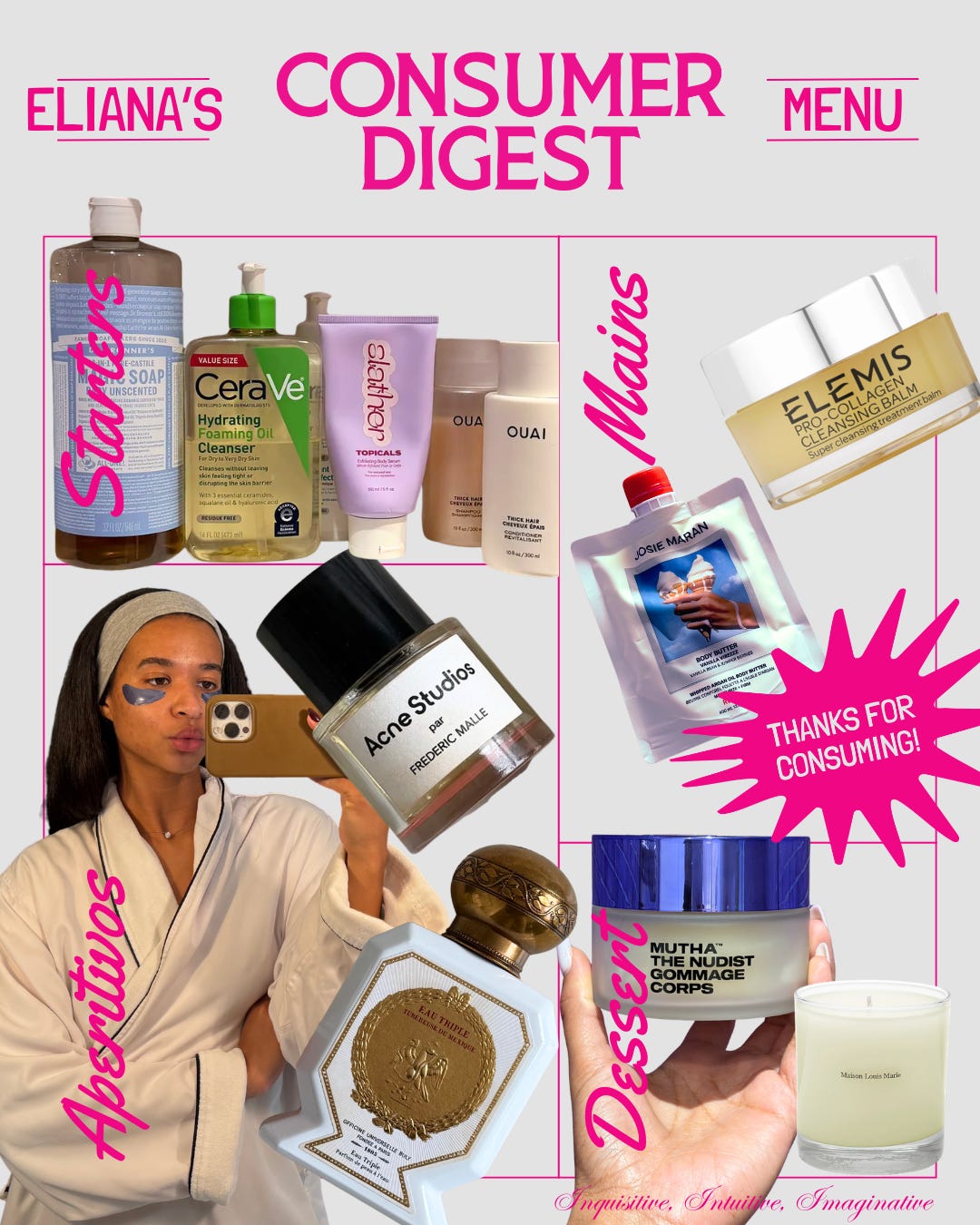 The Menu invites Chic, Conscious Consumers to share their go to products & passions because what’s more curated than a menu? From skincare to soundtracks, here’s what’s on their plate…