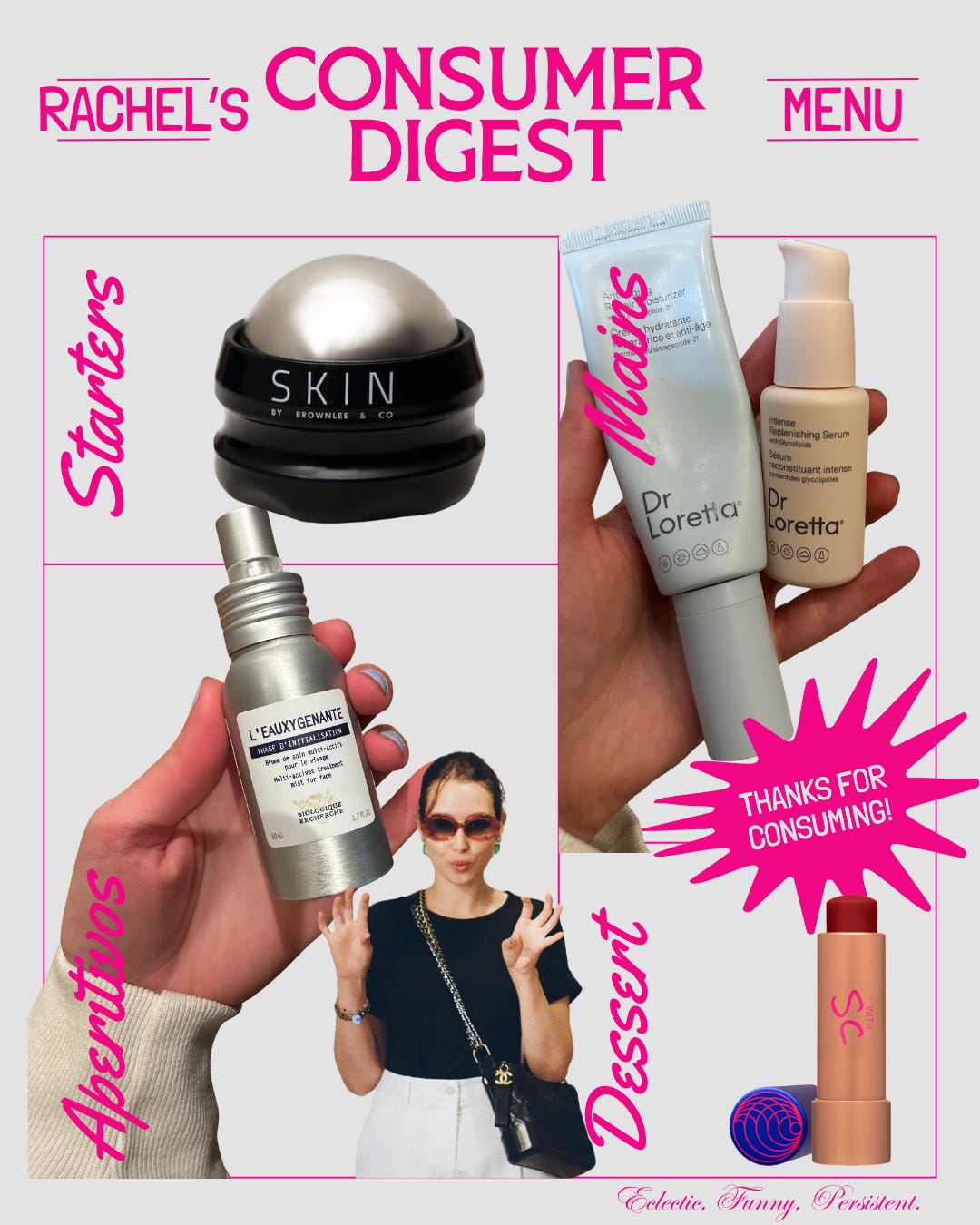 And let’s be clear: Rachel is also one of the coolest and smartest people I know. She and her sister run a Substack called By Benchis, and together they’re doing the Lord’s work—curating the kind of small, chic brands that make you say, Wait, how do they find this stuff? Exactly why, as the Home Chef, I had to serve Rachel’s Menu.